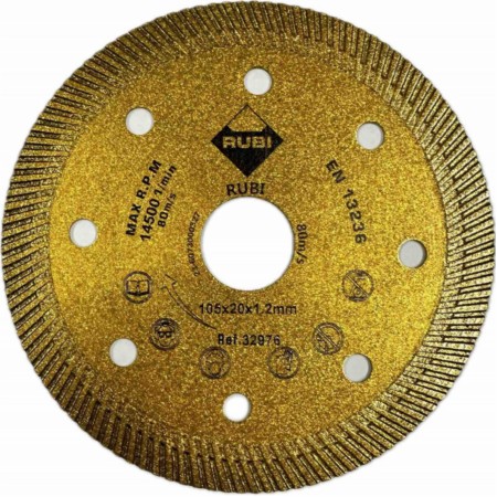 Диск алмазный для плиткореза, RUBI, 105мм, для станков Shijing и WANDELI диаметром 105мм и посадочным отверстием 20мм предназначен для деликатной резки керамогранита, кварцевого агломерата и твердой керамики.